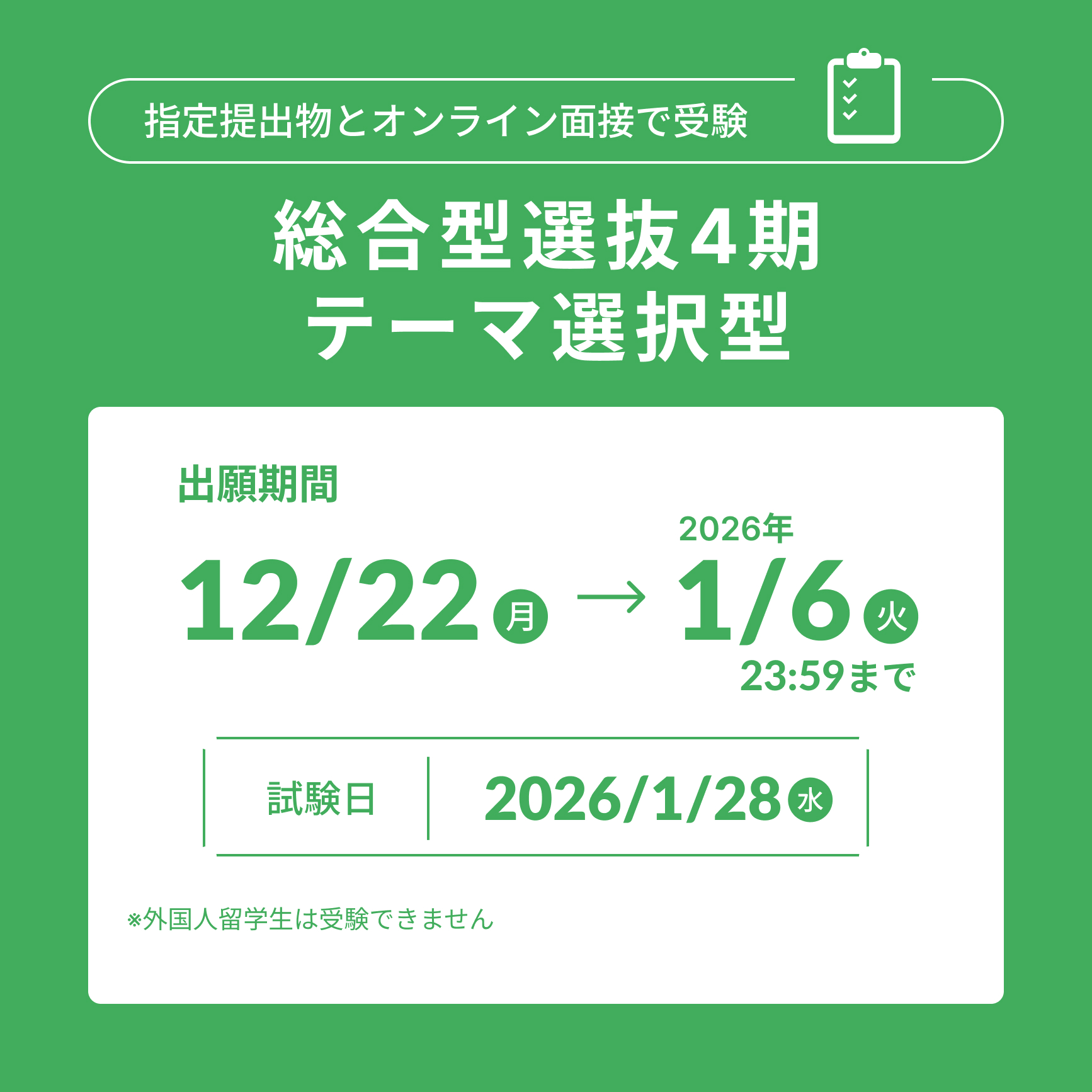 総合型選抜3期(科目選択型・テーマ選択型)、外国人留学生科目選択型入試合格結果について