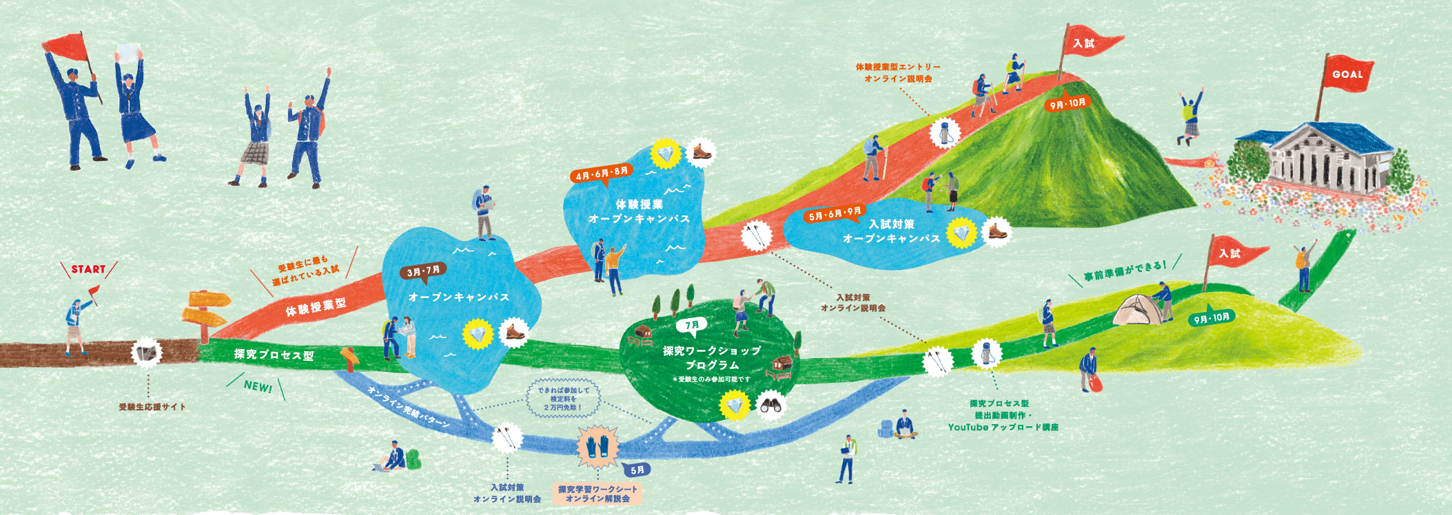 - 大学が企画するイベントで5月から入試対策が進められる