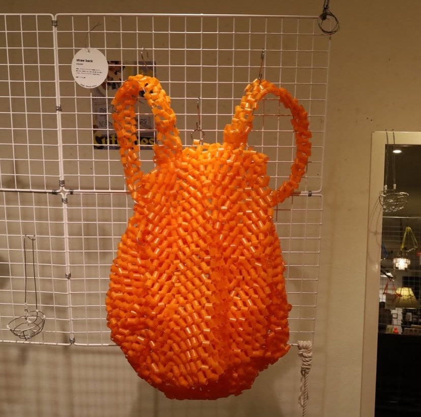- そうなんです。何年か前にも同じ流れがあって、結局またプラスチックに戻った、という話も印象に残っています。 その話を聞いて、「プラスチックストローの良さをどう伝えるか」を考え、ストローを細かく刻んで編み込み、リュックサックを制作しました。