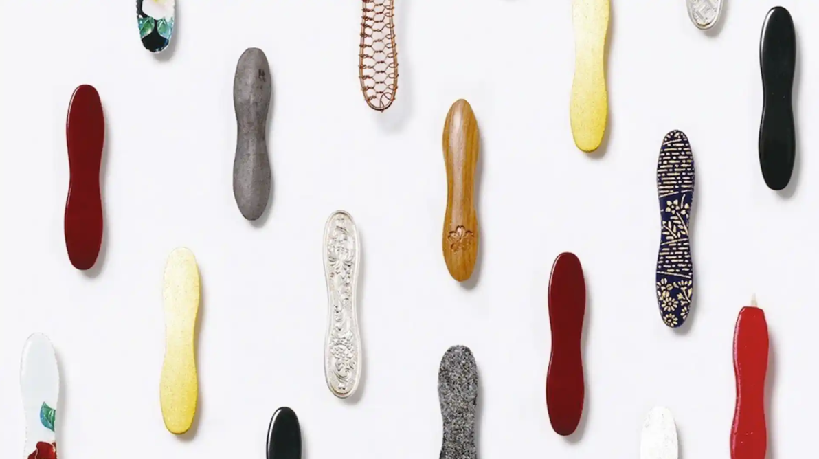 - スーパーやコンビニでもらえるあの木のスプーンを、いろんな伝統工芸の職人さんに、同じ形、同じ大きさで、それぞれ漆や石や金属など、違う素材でつくっていただいて、「舌で工芸を楽しむ」「生活の身近なところから工芸を感じてもらう」という試みです。