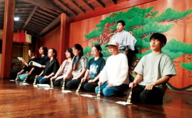 能楽の基本である「仕舞」と「謡」を学ぶ授業。能楽師の第一人者から手ほどきを受け、初心者の学生も能の型を身につけます。基礎を完成させた後は、学外のコンクールに出場することもあります。