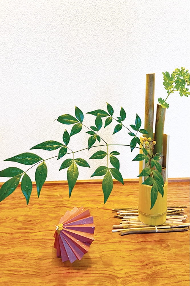 1年次で学んだいけばなの基礎を応用。花を活けるだけでなく、その歴史を学んでいきます。いけばなを中心に捉え、書や画、漢詩などさまざまな技や知識を結集させ、空間についても考えます。