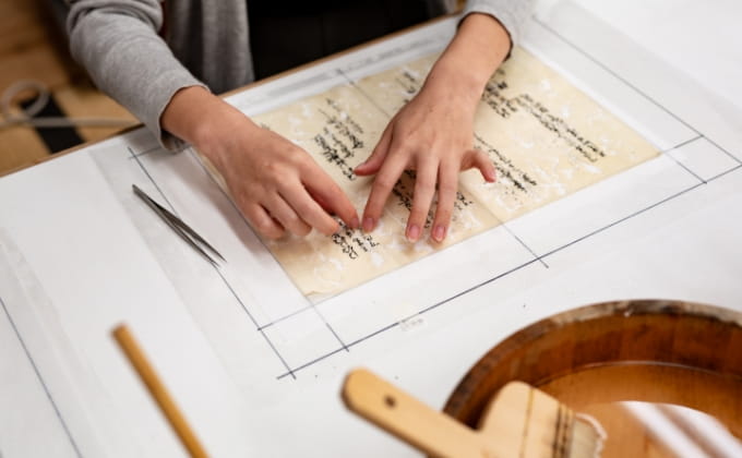 実際の文化財の調査・分析を通して、保存修復の基礎的技術を習得。貴重な資料や文化財の価値を読み解き、保存し、新たな価値へとつなげる力を養います。