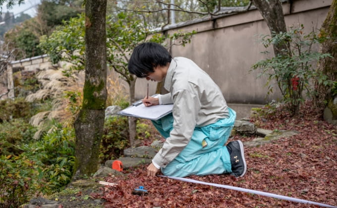 茶室や庭園などの歴史的建造物の管理に取り組む中で、発掘調査や修復、作品展示などに3Dモデリング技術を用いるなど、最先端の技術を活用します。京都の文化、風景を守る一端を担う貴重な体験を通し、未来につなぐさまざまな方法を学びます。