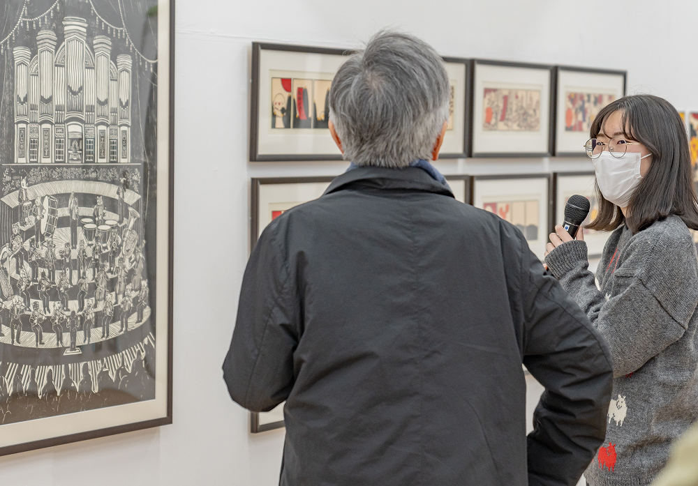 できあがった作品を自ら発信し、鑑賞者に届けることまでを実践しながら学びます。展覧会の企画・運営、ポスターや作品集、WEBサイトの制作などを通し、企画力やデザインスキルも習得。卒業後にも活かせるスキルを身につける機会となります。