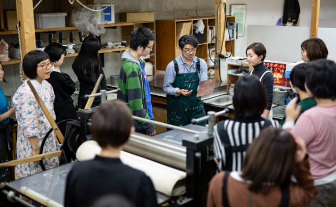授業では絵を描くだけでなく、学外でのフィールドワーク(現場体験)も行っています。猟師になった卒業生の指導のもと罠猟の見学をしたり、美術館や植物園など京都ならではの場で体験や現地調査を行い、現場を通した学びを深めています。