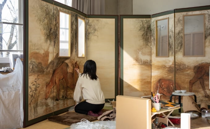 日本画を「表現する手段のひとつ」として捉え、学んだ技法や知識をもとに自分の絵画を完成させます。伝統的な枠組みにとらわれない現代の日本画をつくることを目指します。