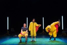 一方の『リアル・マジック』は、パフォーマーの1人が頭の中に思い浮かべている言葉を、目隠しされた回答者が当てようとし、クイズマスターがあおっていくクイズショースタイル。膨らむ正解への期待、不条理な進行によるドタバタが場の可笑しみを育てていく。