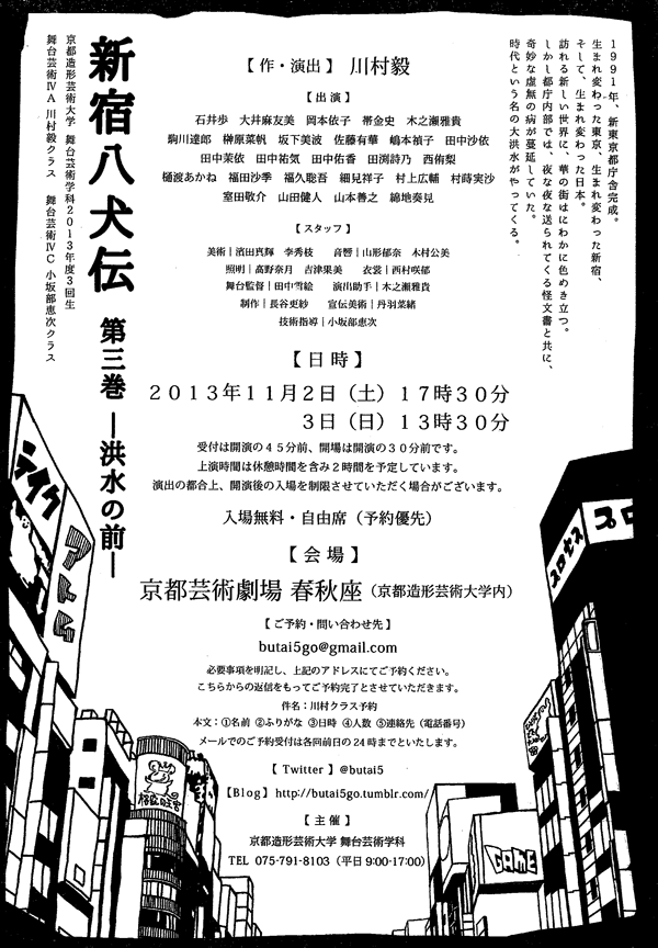 | 関連在学生 | 舞台芸術学科 3回生 川村毅クラス 発表公演 |