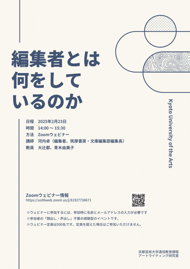 | 主催 | 京都芸術大学通信教育課程アートライティング研究室 |