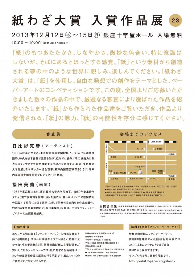 | 主催 | 特種東海製紙株式会社 紙わざ大賞事務局 |