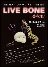 「骨」や「内臓」など体のパーツを題材にしたひびのこづえの衣装、コミカルかつ壮大な川瀬浩介の音楽、そして森山開次の驚異的な身体表現が鮮やかに融合したダンスパフォーマンス“LIVE BONE”は、2010年にスタートし全国各地を歓喜の渦に巻き込んできました。そして今回、この抱腹絶倒のパフォーマンスに、初の試みとして一般公募のオーディションで選抜された個性豊かな“こどもBONEズ”が加わり新たな<春秋座バージョン>として上演します。