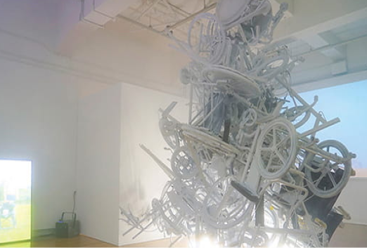 アートという不可能なことを、どのように可能にするか。檜皮という作家を、どのようなかたちで生かしていくのか。大学院で研究したいと考えました。学部時代に彫刻を通して造形の強さを突き詰めた経験と、舞台美術や演者としてパフォーミングアーツの分野に関わってきた経験をもとに、私の作品は可変性/可塑性を帯びていきました。檜の皮やポータブルラジオ、照明器具、そして車椅子。誰でも手に入る物を使って作品を構成しながら、コミュニケーションの量と密度を高めていく。音や光、私や来場者自身のパフォーマンスによって、作品は終わりなくかたちを変えていく。自分の手を動かすという行為は必要なくなり、作品のほうが動き始めたのです。
