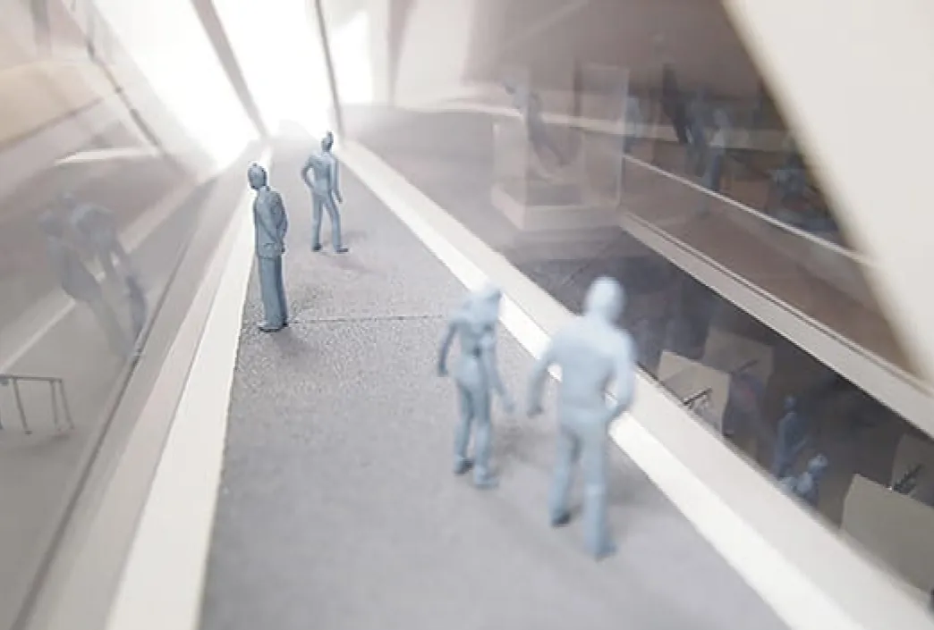 商業建築は住宅と違い、年齢層も目的も様々なお客さまが訪れる場所です。不特定多数の人のために空間をデザインするという行為に商業建築の面白さを感じ、大学院では、商空間を構成する壁面や床などの要素が、人にどのような印象を与えるのかについて研究を深めました。例えば、壁に少し傾斜を加えるだけで、空間の印象が変わること。「赤」にも様々な赤があり、わずかな色の差が、場の雰囲気を変えること。建築を構成するデザインと人の関係を見つめながら、京都にある寺院を訪れたり、スペインへ赴いてサグラダ・ファミリアを自分の目で見て建築を肌で感じ、自分の感覚を磨きあげていきました。