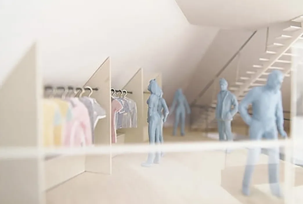 仕事として商業建築を手がける今、大学院で培ったデザインの捉え方が、アウトプットにも影響していると感じます。100年建築という価値観も生まれる中、商業建築のサイクルは5〜10年。今という時代性を捉えつつ、ブランドが紡いできたメッセージをどのように表現していくか。様々な視点を織り交ぜ、空間を創りあげています。そんな仕事のひとつを、『商店建築』という学生時代から読み込んできた業界誌に取り上げてもらい、大学院の恩師からの「読んだよ」という電話に、嬉しさが込み上げてきました。修士で2年、この職に就いて8年、建築への探究心は今も色褪せることがなく、前へと進む原動力になっています。