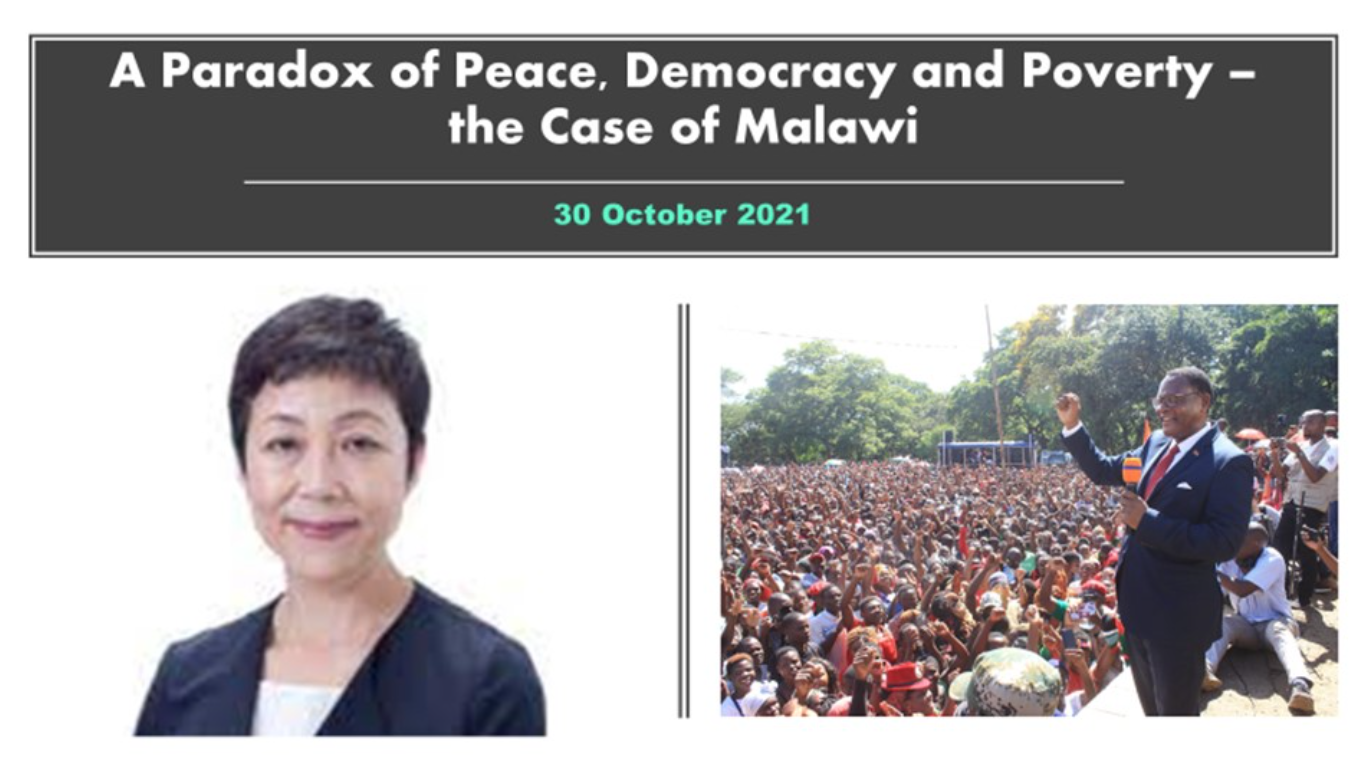 柳沢香枝元駐マラウイ大使による「平和、民主主義、貧困のパラドックス:マラウイの事例」をテーマとしたセミナーを実施しました 開催日 2021年10月30日 会場 オンライン 柳沢香枝元駐マラウイ大使による「平和、民主主義、貧困のパラドックス:マラウイの事例」をテーマとしたセミナーを実施しました PDFをダウンロードする 一覧にもどる
