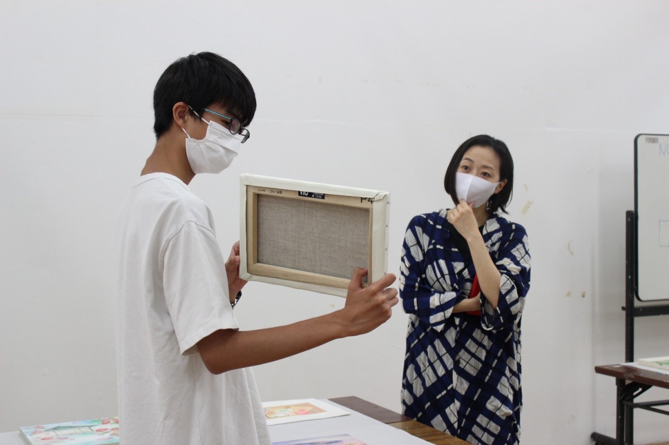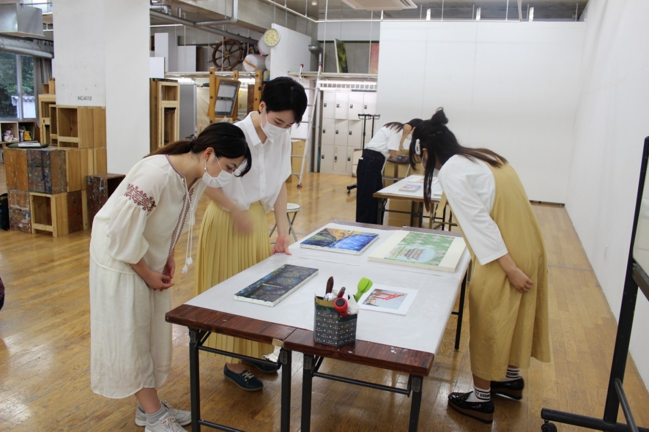 今回設定した原画テーマは「未来に残したい光景」。新型コロナウイルスという目には見えない脅威に晒された時、どのような光景を『未来に残したい光景』として感じ、表現していくのか、美術工芸学科6コースで学ぶ学生たちが、各々の瑞々しい感性で受け止め、お互いに知恵を出し合いながら、日本画、油画、アクリル、水彩、版画、写真コラージュ…とそれぞれの専門性や特異性を存分に活かして、制作された。