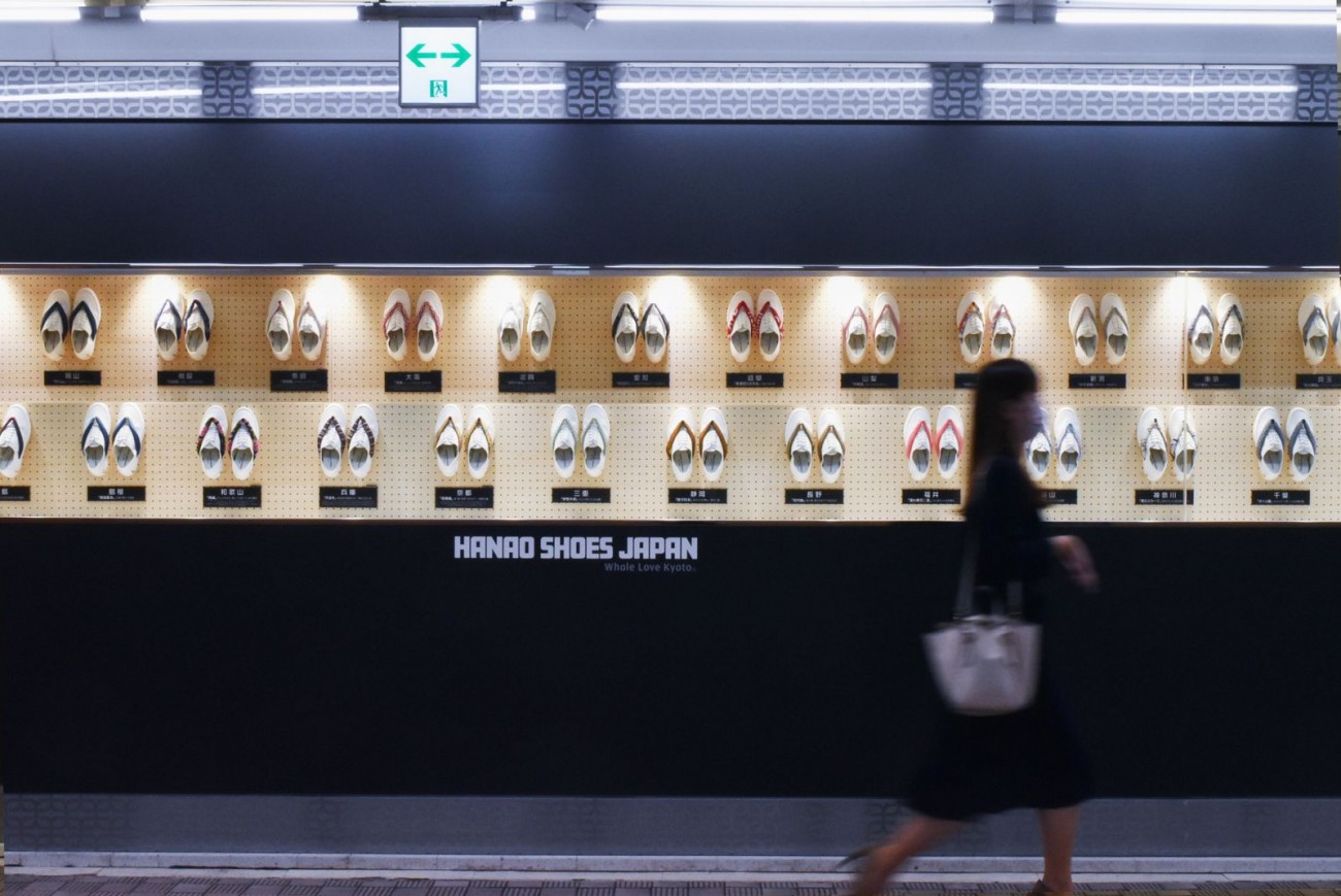 全国47都道府県の染織物を製品化につなげた、新企画『HANAO SHOES JAPAN』が、大丸京都店の地下ウィンドウでお披露目された。
