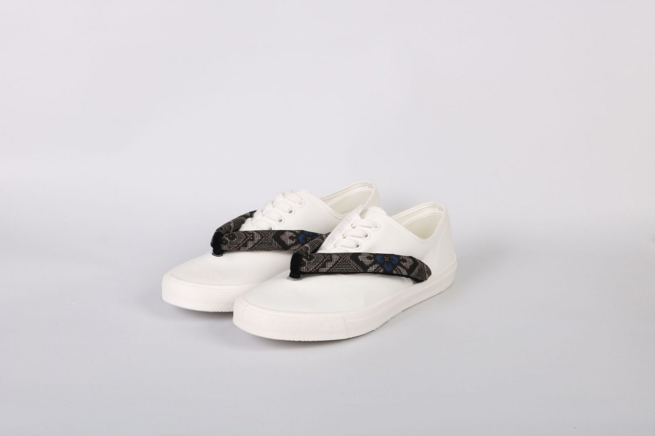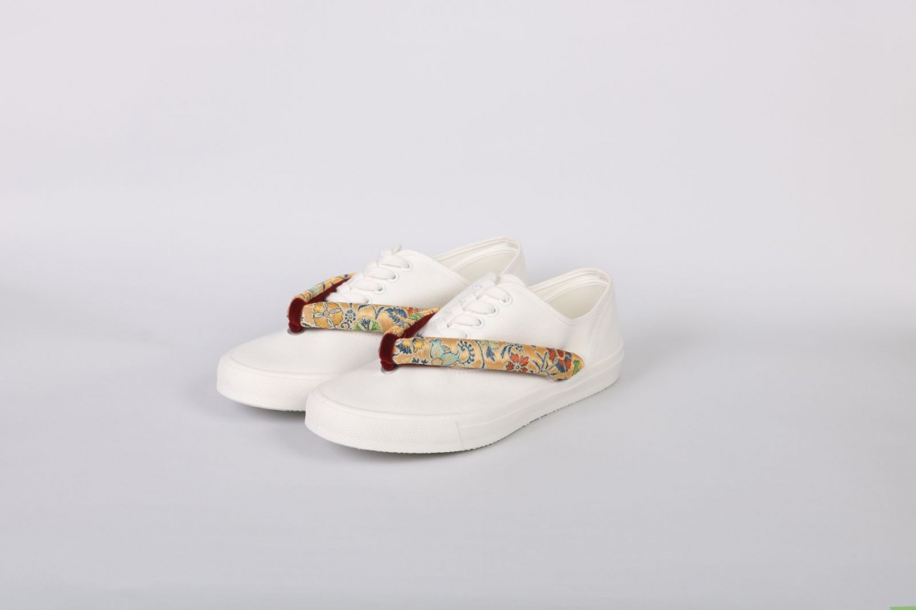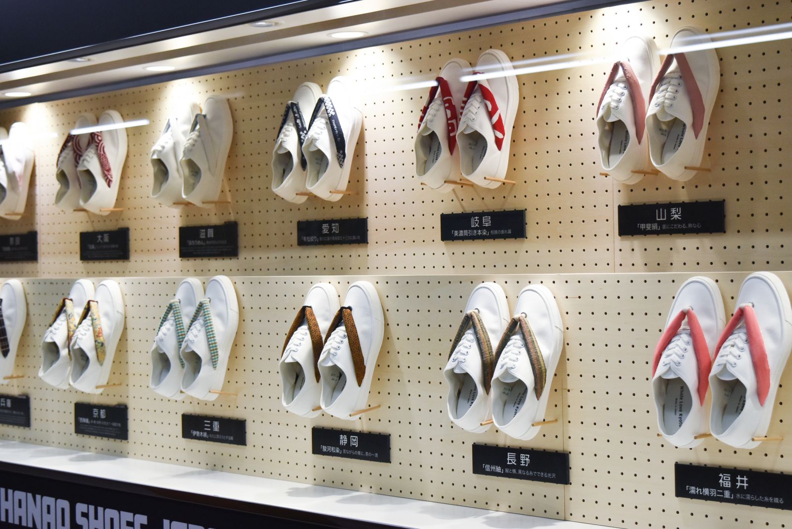 その中、既に製品化されてた鼻緒をスニーカーにすげた「HANAOSHOES」をさらに47都道府県各地の染織物工房とつながり、全国から集めた染織物を鼻緒に仕立てスニーカーにした「HANAO SHOES JAPAN」を新たに展開する事となり、この度無事に完成したためお披露目に至った。