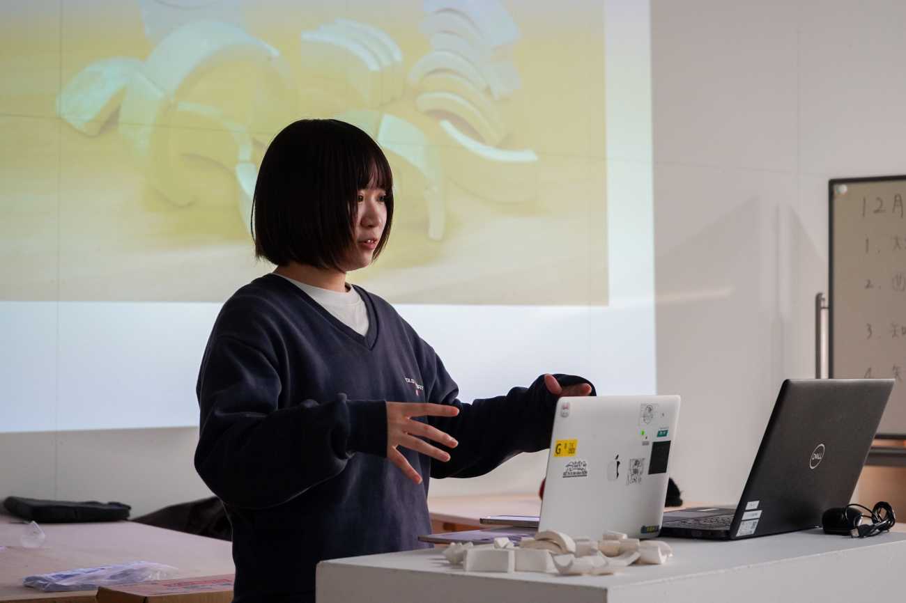 前期はアイデア出しと素材研究を行い、後期に試作品を制作した。試作品を用いて実際の保育現場で実践を行い、そのフィードバックをもとに改良を重ね、企業を迎えて最終プレゼンを行った。