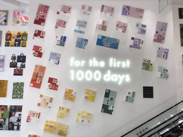 制作したマテリアルボードのアートワークは店舗エスカレーター横で展示中