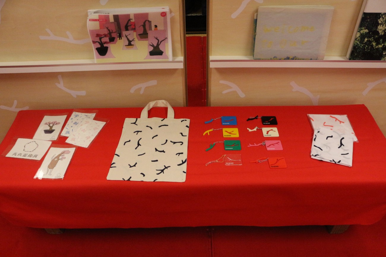 カフェスペースでは、学生考案のグッズを販売している他、本プロジェクト関連資料も公開