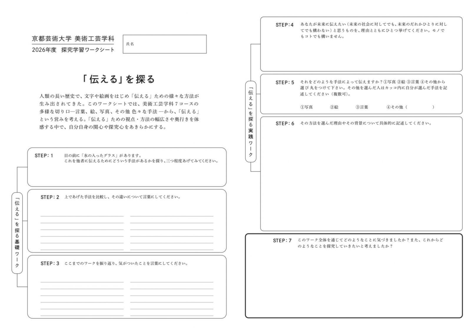 (画像:京都芸術大学美術工芸学科の2026年度探求学習ワークシート)