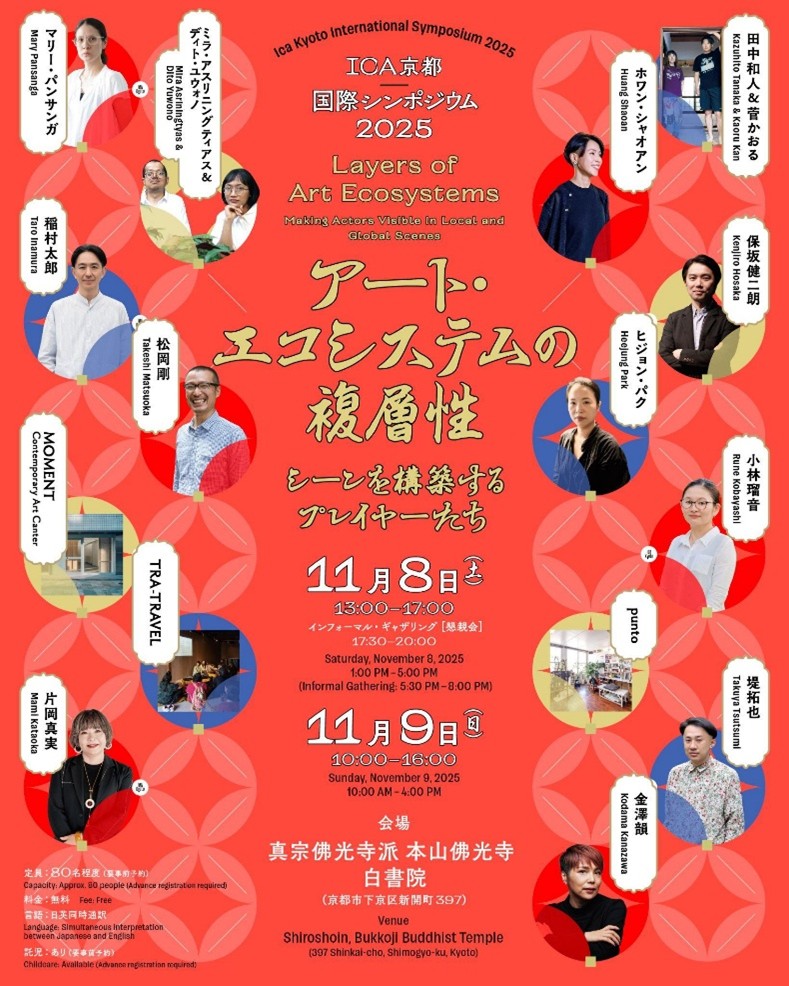 登壇:マリー・パンサンガ(STORAGEディレクター・キュレーター [バンコク])、田中和人&菅かおる(artist-run space soda [京都])、ミラ・アスリニングティアス & ディト・ユウォノ(Cemeti - Institute for Art and Society ディレクター [ジョグジャカルタ])、ホアン・シャオアン(Hong Foundation キュレーター [台北])、稲村太郎(公益財団法人セゾン文化財団 プログラム・ディレクター [東京])、保坂健二朗(滋賀県立美術館 ディレクター〈館長〉 [滋賀])、松岡剛(広島市現代美術館 主幹学芸員 [広島])、ヒジョン・パク(韓国国立現代美術館(MMCA)チャンドン・レジデンシー マネージャー [ソウル])、punto(共同スタジオ [京都]) 、TRA-TRAVEL(アートハブ [大阪])、MOMENT Contemporary Art Center (コンテンポラリーアートセンター [奈良])、小林瑠音(兵庫県立芸術文化観光専門職大学 講師)、片岡真実(ICA京都 所長)、中山和也(ICA京都 副所長)、堤拓也(ICA京都 プログラム・ディレクター)、金澤韻(ICA京都 特別プロジェクト担当ディレクター)