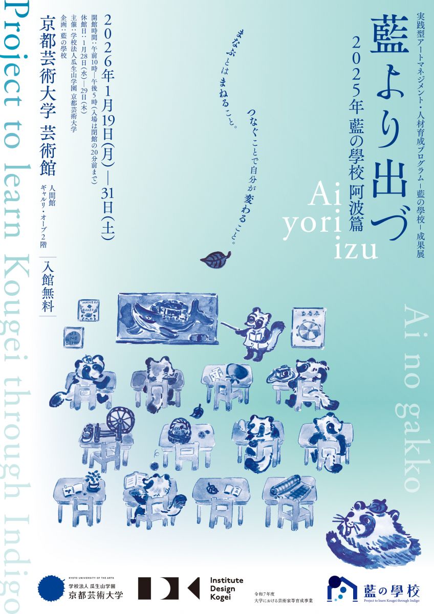 京都芸術大学(京都市左京区/学長:佐藤 卓)は、通学課程・通信教育課程あわせて約23,000名が学ぶ日本最大級の総合芸術大学です。本学では、「令和7年度大学における芸術家等育成事業」として、昨年4月より「受け継ぐ、伝える、伝統文化を未来へ生かす実践型アートマネジメント・人材育成プログラム 藍の學校」に取り組みました。