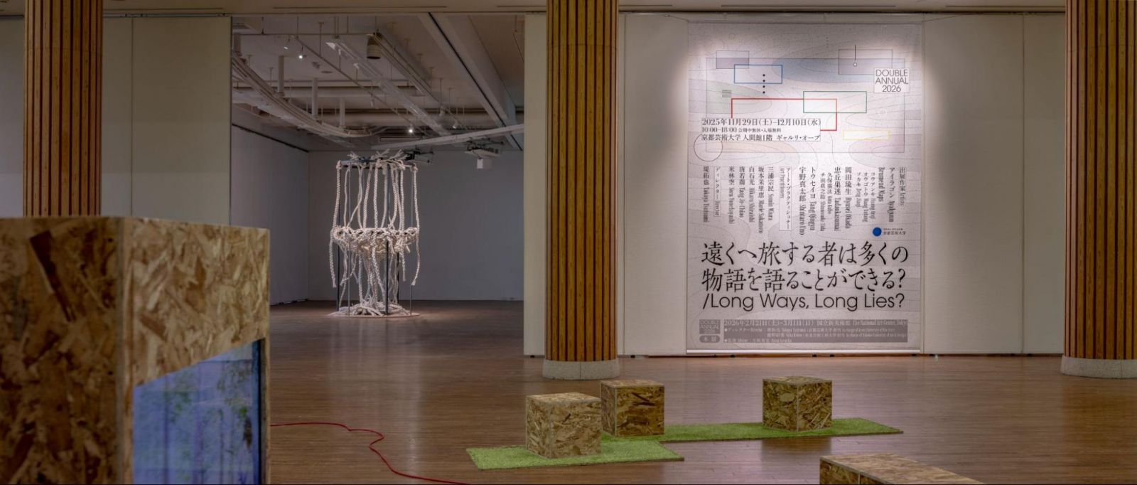 京都芸術大学と東北芸術工科大学による学生選抜展「DOUBLE ANNUAL 2026」は、両大学の学生がキュレーターとの対話を重ねながら、約1年をかけて展覧会をつくりあげる実践的な芸術教育プログラムです。本年度のテーマは「遠くへ旅する者は多くの物語を語ることができる?/Long Ways, Long Lies?」。京都と山形という二つの異なる場所から生まれた視点が、国立新美術館という中間地点でひとつの展覧会として立ち上がります。
