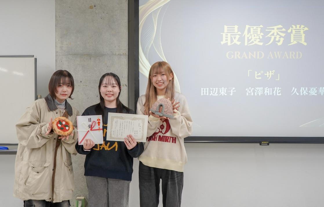 受賞者:久保憂華、田辺東子、宮澤和花(3名ともプロダクトデザイン学科2年)