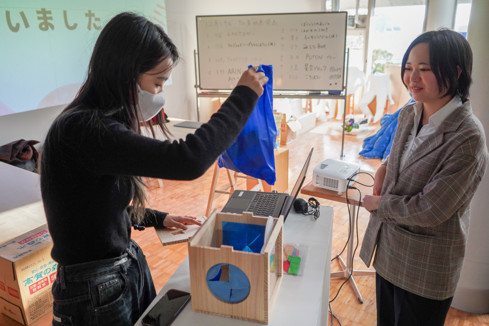 「みててBOX」を企画したヨウさん(左)と「PUTON」を企画した永井さん(右)