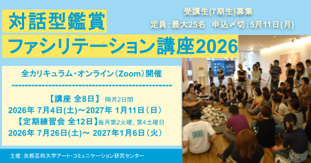 ACCでは、2026年7月から、今年で第7回を数える「対話型鑑賞ファシリテーション講座2026」を開講いたします。作品の鑑賞を通して、観察力や思考力、コミュニケーションスキルといった様々な能力の育成に寄与する対話型鑑賞*は、全国の美術館や学校現場を中心に取り組まれてきました。近年では、ビジネスシーンや医療現場における能力開発、さらにはコミュニケーションやコミュニティの創出など社会課題へのアプローチとしても、広く応用されるようになっています。