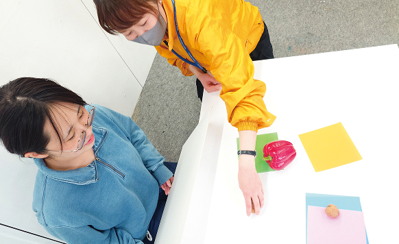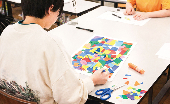 色や形の組み合わせだけで「居心地の良い雰囲気」をつくります。絵の上手さは関係ありません!色紙を使い、配置やバランス、余白を工夫しながら、「なんだかここに居たくなる」雰囲気を平面で表現します。色や形による印象の違い・伝わり方を見つけながら、正解のないデザインの面白さと奥深さを体験します。