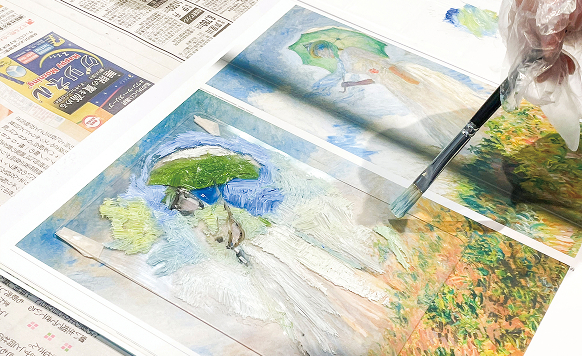 最近はデジタルで絵を描くことも日常的になってきましたが、油画コースでは手触り感のある素材・技法を使った多様な絵の描き方が学べます。今回は、版に油絵具で描き、手づくりバレンで紙に刷るモノタイプ制作を体験します。素材や道具を使う上でのコツも伝授するので、初めてでも安心して絵の広がりを楽しんで下さい!