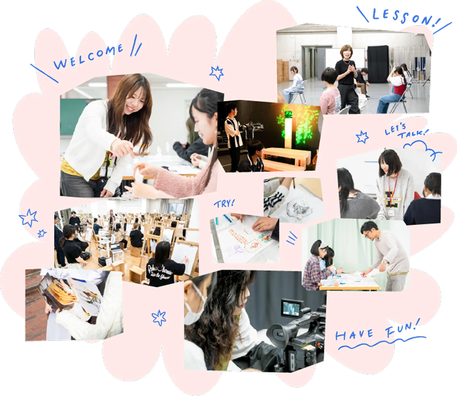 芸大生になりきって、大学の授業を体験できる特別なオープンキャンパス。芸大の本格的な授業を高校生向けにアレンジしています。はじめての人でも大丈夫!先生や学生スタッフが丁寧にサポートします。