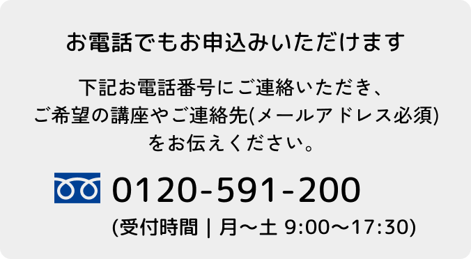 以下の申込フォームからお申し込みください。受付が完了しましたら、登録いただいたメールアドレスに申込完了メールをお送りいたします。