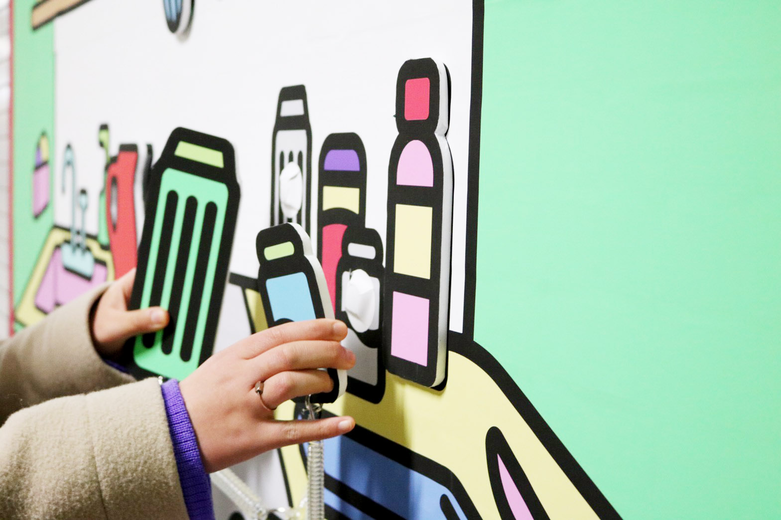 誰もが明るい気持ちになれ、思わず触れたくなるようなポップで可愛い巨大壁面アートを作りました。