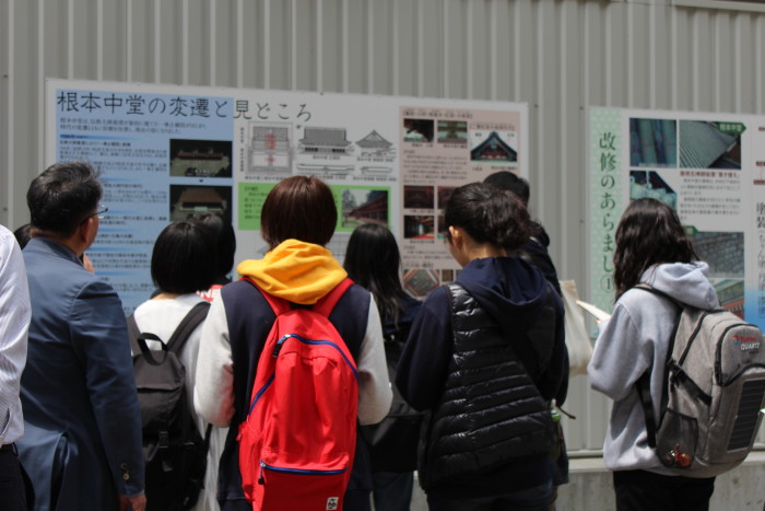 現在、根本中堂の改修が行われており、その様子を見学することができました。