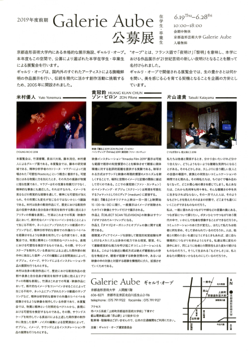 2019年度前期「ギャルリ・オーブ在学生・卒業生公募展」
