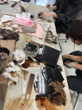 2年生、3年生は6月21日(金)までの前期第二課題で漆の授業が行われました。