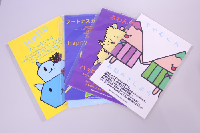 また、「子どもキャラレッスン」では、こどもがデザインしたキャラクターを企業が採用し、その利益の25%を子どもの自立資金にし、残りの75%を「子どもキャラレッスン」の費用にします。採用されたキャラクターは、名刺や企業の商品パッケージに使用されています。