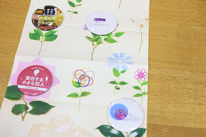 来場者パンフレットに掲載されているページに缶バッチを乗せてパシャり。
