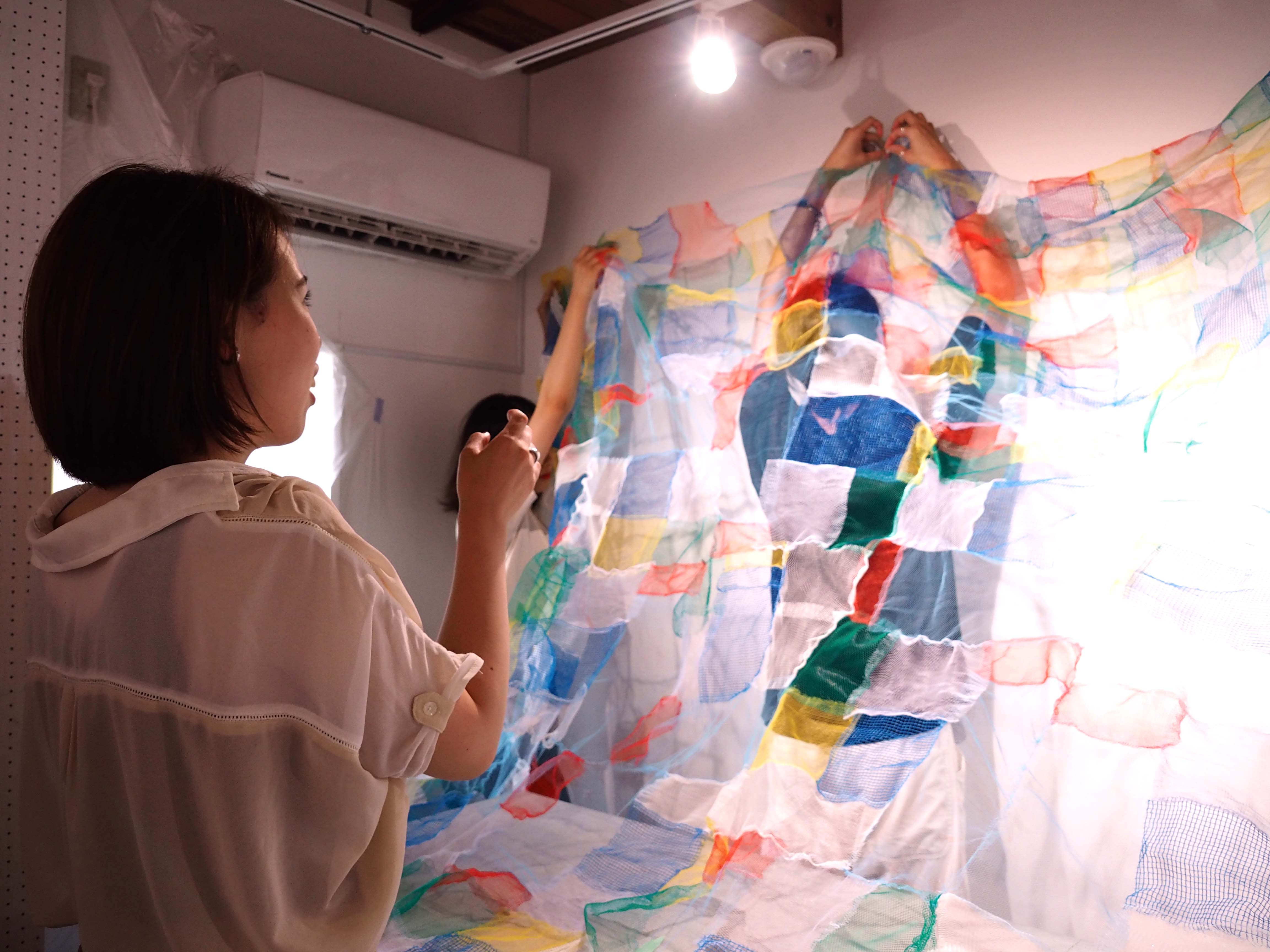 鮮やかな色味のネットを縫い合わせ、キャッチーな空間に仕上がりました!