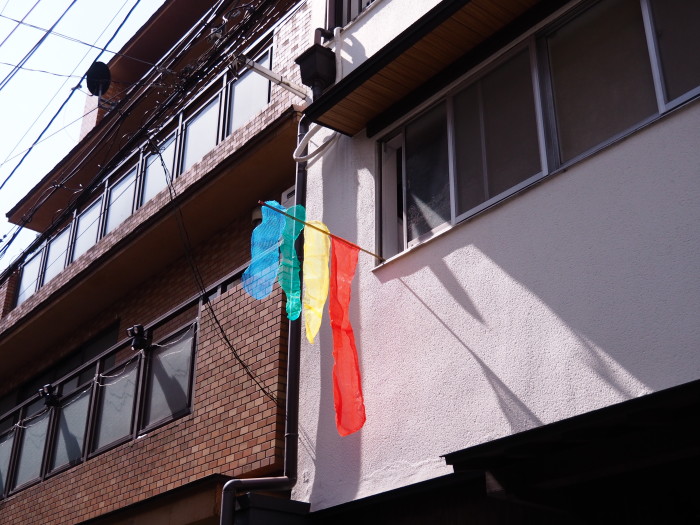 2階から、ネットのカラフル靴下がぶら下がっていますので、目印にしてください