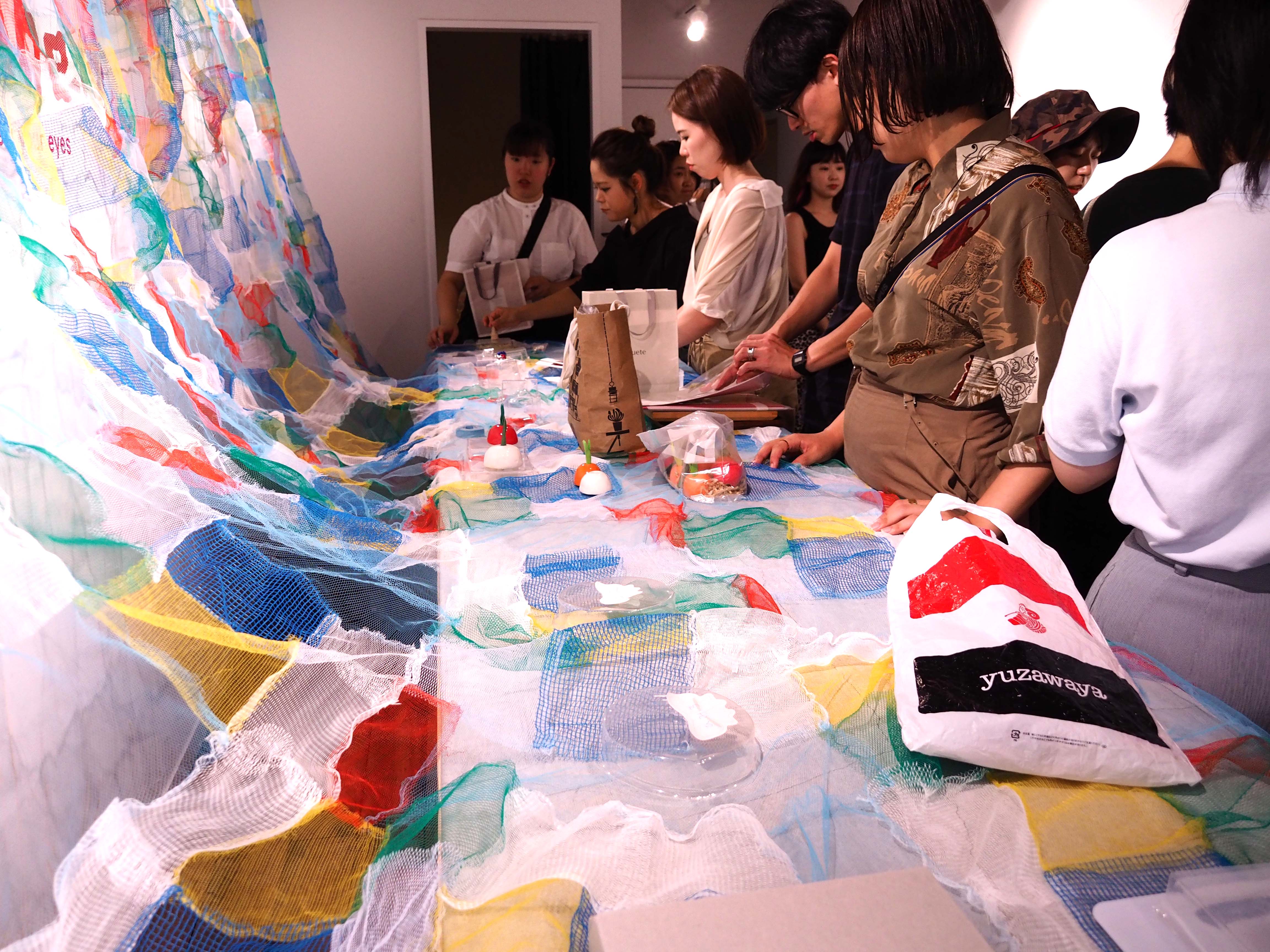 台所でよく見かけるアイテムも展示空間の素材に使用されています。