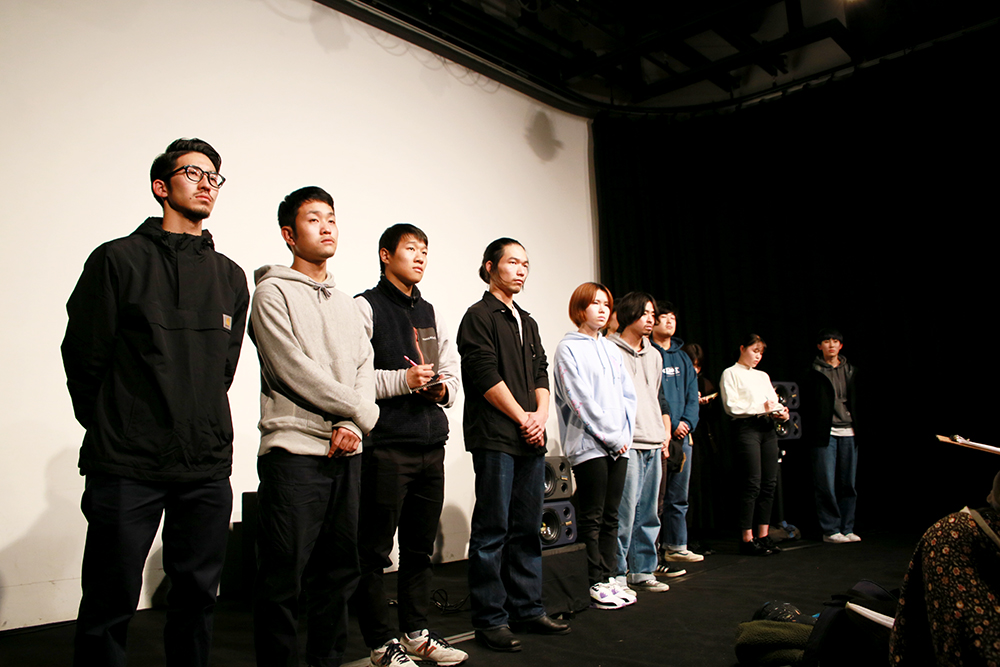 そして例年通りBスタジオでは下回生たちが作品上映と講評を視聴しました。