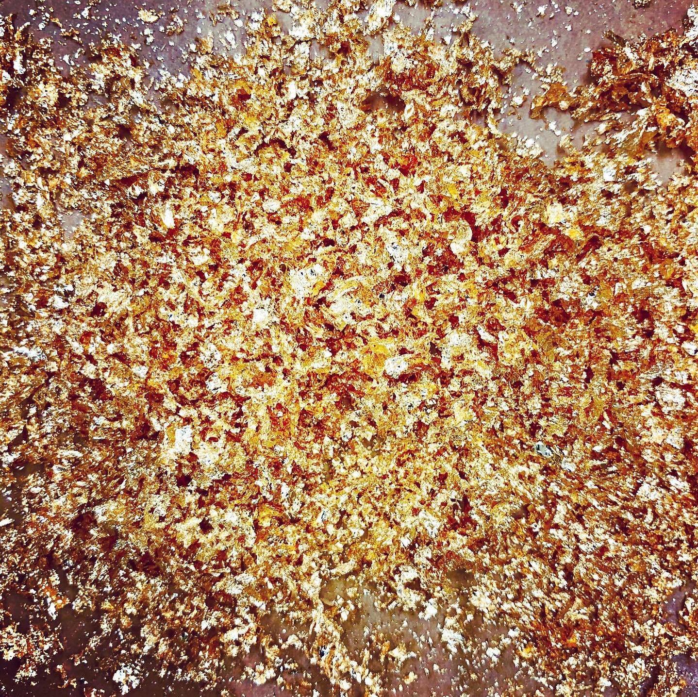 現在、30日分の金砂子を準備中。この金箔を細かく砕いたキラキラの砂子が皆さんの手元に届きますよ。