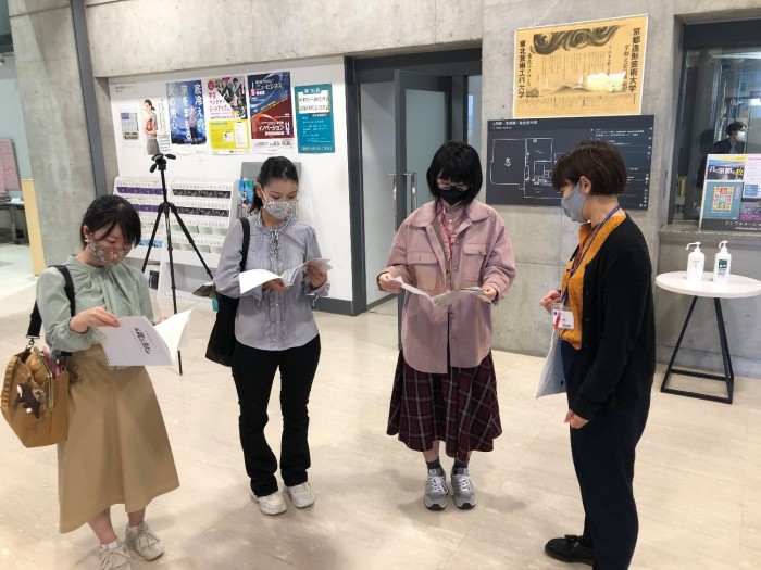 テストプレイに挑戦してくれた京都芸術大学付属高校の生徒さんと、導入の解説をするアドミッションオフィスの上田さん。