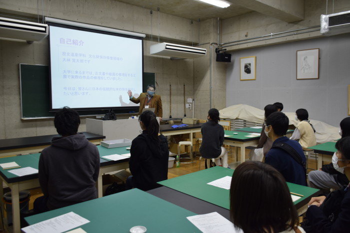 今回の講義は、東洋の書画や写真の保存修復がご専門の大林先生にレクチャーをしていただきました!